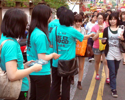 La filial de La Fundación por un Mundo Sin Drogas en Taiwán es una de las más activas del mundo: se contactaron a 1,1 millones de personas a través de 3.400 eventos informativos, la entrega de 700.000 folletos, la asistencia de 304.000 estudiantes a conferencias en 850 escuelas diferentes y anuncios de servicio público transmitidos en 50 canales de televisión a más de 5 millones de espectadores. Entre los partidarios y socios se incluyen concejales de la ciudad, legisladores, jefes de policía, alcaldes, el Ministerio de Educación y ONGs como la Fundación Internacional para la Eliminación Pacífica de los Cultivos de Opio.